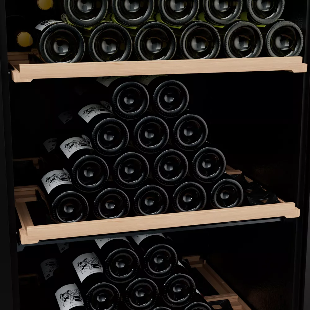 - Matériau des clayettes : bois, permet d’offrir une conservation optimale pour le vin en maintenant le liège en contact avec le vin et une durabilité à long terme