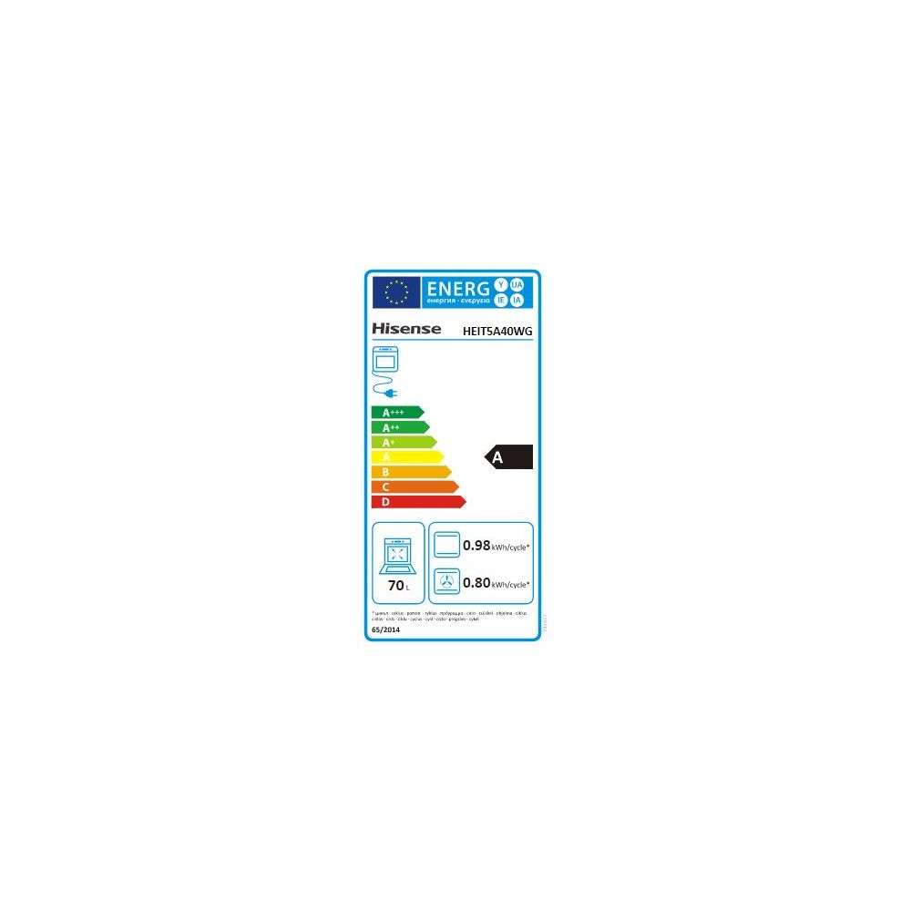 • Valeurs du label énergie : Label énergie A, Consommation en convection naturelle 0,98 kW, Consommation en chaleur tournante 0,8 kW