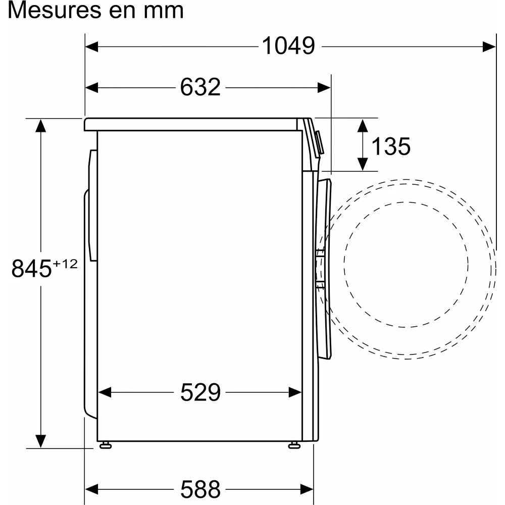 - Profondeur avec hublot fermé, débord arrière compris : 59,0 cm